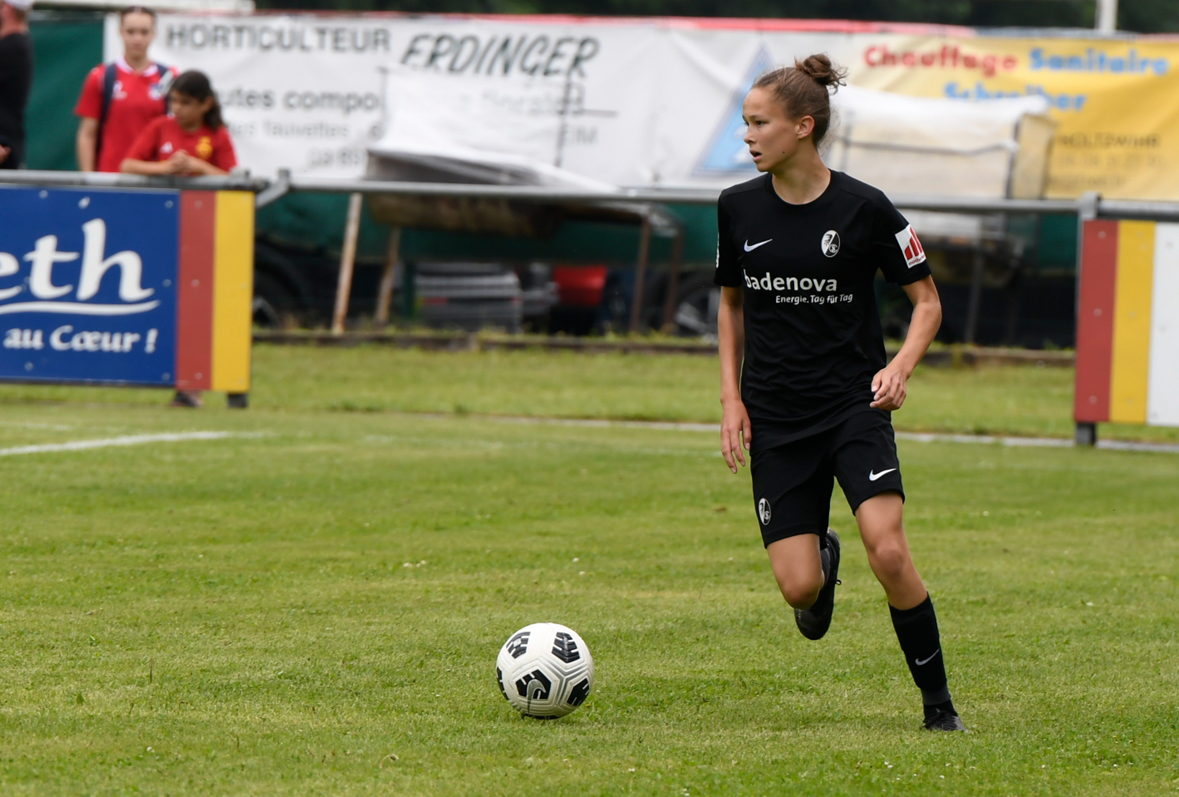 évolue de longue date dans l élite du football Allemand en Bundesliga. Frontaliers, les rouges et noir viennent en voisin à Holtzwihr se mesurer au différents styles de jeux des equipes Françaises , Suisses Italiennes de l'Alsace Women's Cup.@sc_freiburg_frauen