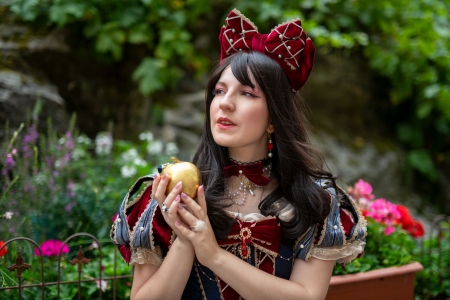 Elle n’était pas la Blanche Neige des légendes lointaines, mais une jeune fille du pays, aussi douce que mystérieuse. Les habitants chuchotaient qu’elle avait le don de communiquer avec les plantes et que ses mains, en effleurant les feuilles, faisaient murmurer les secrets du vent. Ce jour-là, elle portait une pomme dorée, aussi brillante que le soleil, cueillie dans le verger de sa marraine, une vieille femme qui connaissait les recettes oubliées et les sorts bienveillants.